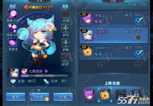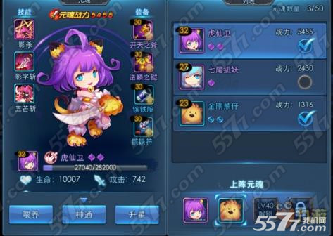 远程输出元魂:狐之灵、七尾狐妖、九尾妖狐、驭灵学徒、驭灵师、驭灵天师、翼娘、白羽之翼、迦楼罗、水之灵、水之魔灵、玄海、雷息龙、息龙仙兽、火麒麟、麒麟仙兽、剑奴(紫和金)、尸兵(紫和金)、千羽(紫和金)。