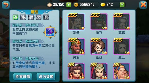 闪避流以枪兵为主,因为很多枪兵天赋有闪避加成,如赵云、马超、张辽都是闪避很高的枪兵,而且攻击都不弱,赵云马超打纵向,张辽打横排,攻击覆盖面较广。