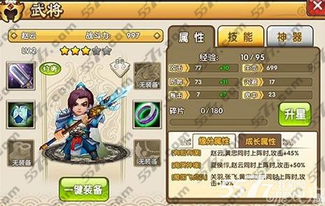 5、其他武将就不说了,不建议前期盲目刷武将,看你自己有什么武将觉得可以就培养吧,一星的武将比三星好也正常,看三星的刘备就知道三星的不一定好,再说以后碎片多了,武将的星级还不是一样。