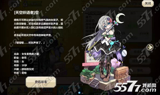 上面就是小编为玩家们介绍的梅露可物语天空织语者空的属性图鉴,更需哦精彩的游戏攻略欢迎关注5577我机网!