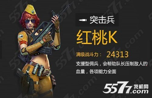 当玩家在游戏中进行第一场战斗的时候,系统就会赠送玩家一个美女佣兵“红桃K”。“红桃K”是突击兵,支援型佣兵,突击步枪手,会帮助玩家压制敌人的血量,各项属性都不错,在针对比较简单的副本还是很实用的。“红桃K”还附带基础技能“鼓舞”,增加所有友方角色10%的额外攻击力,BUFF加成有着不错的增益效果。
