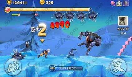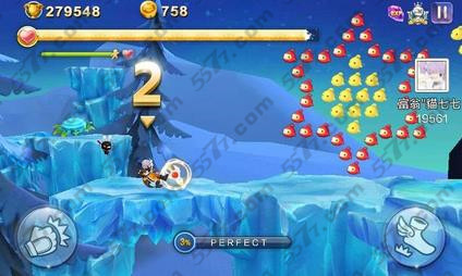 如图2,小编已经顺利的击杀了精英怪7段跳躲过了道具顺利的跳到了雪地上,面前又是一大波蝙蝠,还和秋地图一样,击杀蝙蝠之后可以进入杀戮模式,但是也有可能不进入,因为Perfect没到百分百,不过没关系,击杀蝙蝠怪后面还有5个怪,平均每个怪击杀完后会获得百分之3的Perfect值,还是一样可以进入杀戮模式,这个问题在秋地图也一样会出现,处理方法也跟这个一样。下面请看图3
