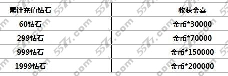 活动内容:新年金喜来袭,每日金喜礼包享不停!只需充值1999钻石即可累计额外获得45W金币哦!