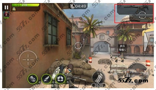 3.进入游戏后,我们会发现在游戏屏幕的右上角有切换武器的图标,玩家只需点击右上角即可进行武器的切换。