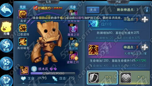 天下HD元魂桃木兵技能:
