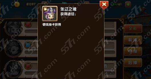 玩家们可以通过过关斩将来获得张辽,不过过关斩将要求等级30级哦!不够等级的玩家要努力升级了。还有也可以通过探宝来抽取得到武将。