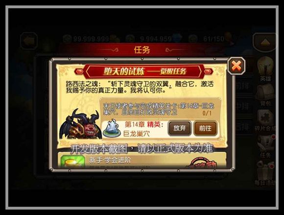 觉醒任务第三环:末日使者参与完成精英关卡:第14章-巨龙巢穴,并亲自几百灵魂守卫