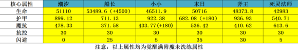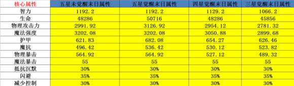 我们对比一下觉醒末日和众多觉醒主流T的属性,从中可以看出末日在属性上的均衡和优势: