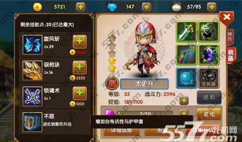小编我觉得太史慈大招还不错,对于新手来说,这些伤害值足以应付,在推图时太史慈的表现也相当不错。但是遗憾的是,他在竞技场的表现就有些不尽如人意了。毕竟站在前排,血量还如此之薄,想要保住小命还是相当不容易的。往往还没来得及出大招,就已经分分钟被秒杀,实在有些可惜啊。