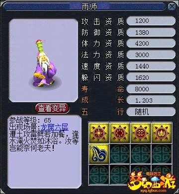 雨师的各项资质表明它属于法系输出宠,可以用于升级、多人副本中。