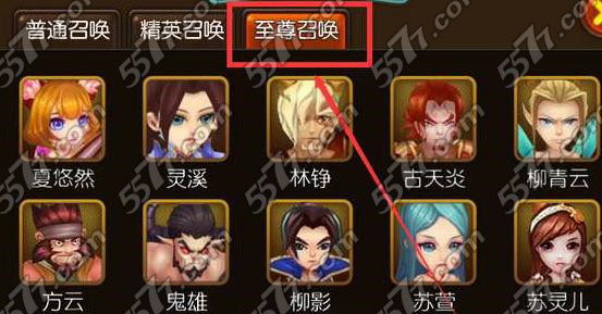 最高级的招募就是至尊招募了,因为在这个至尊招募里面我们可以招募到4星至5星的武将。48小时一次免费招募的机会,也可用280元宝进行抽1次和2520(首抽必出13资质)抽10次这种方法进行。
