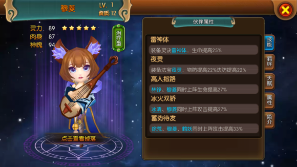 下面这个英雄就是整个队的核心了,有眩晕,持续伤害,暴击,肉盾了还缺什么呢? 对,你想的没错,一个完美的队伍怎么能没有奶妈呢,我们就来说说这个奶妈,这个英雄就是穆菱 队里唯一一个12资质的英雄 由于要搭配羁绊 只能委屈奶妈 用12资质的了 。 而说到穆菱 不得不说她的技能,各种防御,减伤,加血有没有 你敢说一个12资质的奶妈会被对面一刀砍死吗 后排不解释