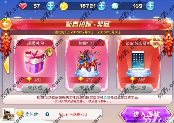 天天酷跑新春版有新春活动新春热跑,参与多人对战,每局可以获得2个奖杯,其中神兽年年需要570个奖杯才能兑换。下面来看看具体春节获得神兽年年的活动内容!