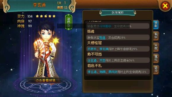 通过上面三个5星13资质的伙伴可以看到有两个伙伴和一个5星13资质的伙伴也产生了羁绊,就是他了。