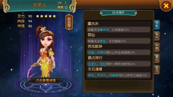 第六个位置,苏灵儿,与上阵的【牧尘】产生羁绊