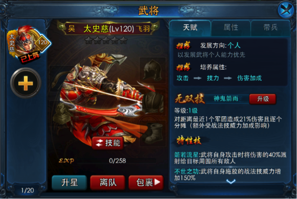 太史慈:对于个人武将太史慈来说,神鬼箭雨这个无双技跟武将自身的高技能伤害特点贴合的很好,有相当不错的清场效果,对于喜欢走AOE路线的玩家还是非常值得入手的。