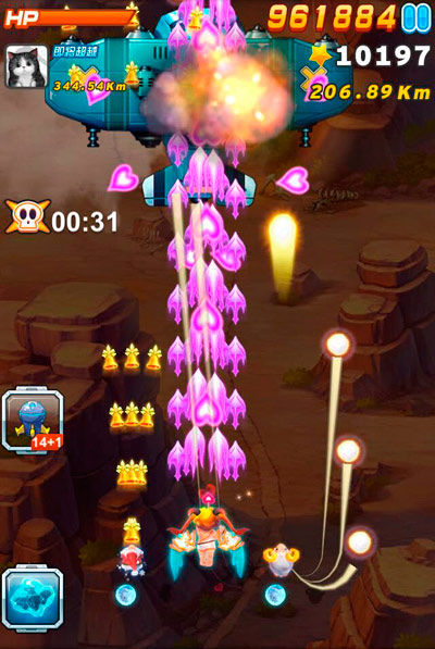 值得一提的是羊咩咩的弹道是萌萌哒的雪球,底部飞起的雪球带有尾巴一直可以延伸至屏幕顶端,如同等待绽放的烟花。而追踪性雪球找到目标敌机痛快打击时,将秒杀区域内敌机,且呈现雪花散开的绚丽效果,羊咩咩这是集暴力与美学与于一身呢!