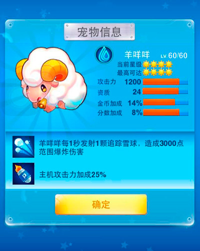 作为羊年限定宠物,我们看到羊咩咩的实力表现的确可圈可点,而获取成本和培养成本也是凸显了年货礼赞的宗旨。此外,当敌机为火属性时羊咩咩还会造成30%的额外伤害,这也是不容忽视的哦!