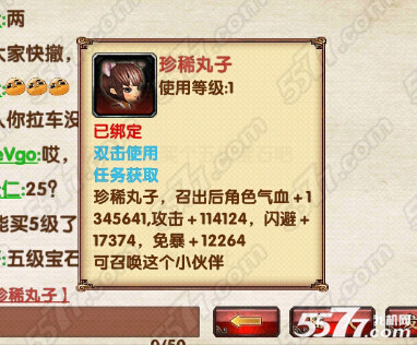 上面就是小编为玩家们介绍的卧虎藏龙手游珍稀丸子属性及获得方法,更多精彩的游戏攻略欢迎关注5577我机网!祝大家游戏愉快!