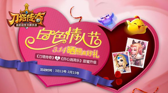 小冰冰与小黄鸡的偶遇,会碰出怎样的火花?在这个浪漫的白色情人节,《刀塔传奇》首次合作《开心消消乐》,共同推出“晒照赢好礼”活动,让甜蜜再次升级,给你一个难忘的白色情人节。