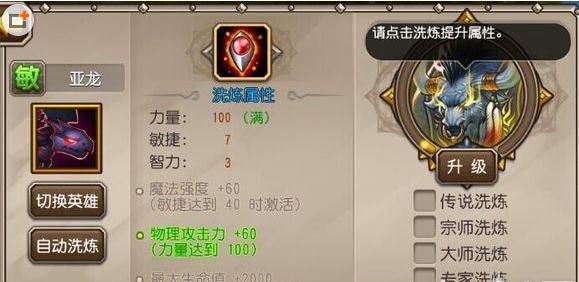 亚龙的双洗就是洗出敏捷和力量,这样可以较高的输出,还附带魔法强度和血量的提升还是不错的。