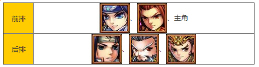 阵容分析:这套阵容中马超和魏延的合击技能可以对当前目标和随机一个目标50%的概率造成眩晕,实测基本上出手就能晕一个。赵云和黄忠的合击技能100%让对面一列的敌人减少一点怒气,让他们无法第一回合释放技能。张飞则有25%的几率让敌方前排眩晕,实测还是很好用的。主角和魏延基本上充当补刀的角色,黄忠攻击提高60%命中则可以对对面后排造成稳定的杀伤。
