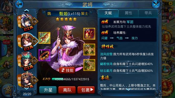 甄姬特性技2:自身和麾下所有兵种闪避+40%