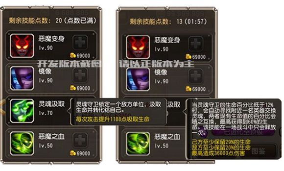 灵魂守卫的这一技能可以说变化非常大,接近残血的灵魂守卫施放灵魂汲取,立刻跟身边的英雄交换了生命值。换血后,配合四技能,会使得灵魂守卫在战场上战斗力更加持久,而变身后的灵魂守卫又不受任何控制技能影响,还能召唤出幻象帮助自己战斗,这样一个新的灵魂守卫,一个真正的恶魔,你怕了吗?