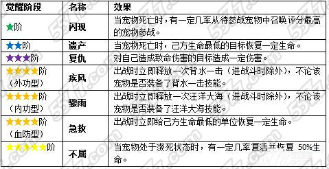 觉醒后的宠物还可根据评分要求进行下一阶的觉醒,没进阶一次觉醒,都会提高资质上限以及可培养次数,还会获得新觉醒技能。
