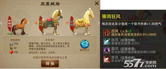 1.风系主攻击、次防御,战斗中攻击敌人并造成伤害后获取马匹怒气。