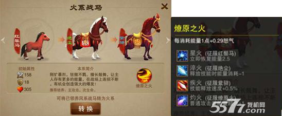 2.火系主攻击、次生命,战斗中人物消耗能量后可获取马匹的怒气。