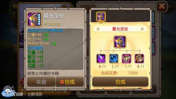 觉醒装备:属性 智力+50(40) 加生命+800(500) 魔法强度+180(100)
