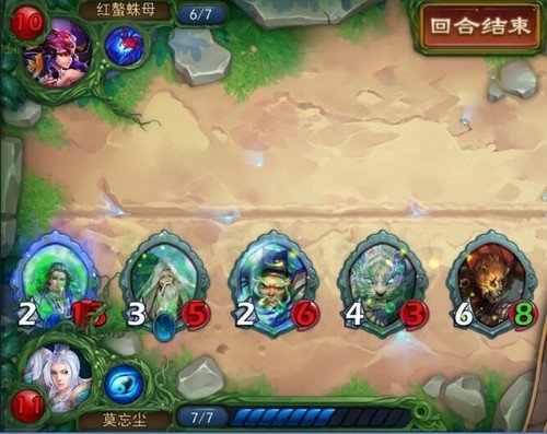 历经磨难终于到了这一阶段的最终关底了,我经过很多次的尝试和理解,最容易打过的办法是不要优先管对手的援护生物,一定要强行攻击杀死对手的各种蜘蛛,因为它们都能升级!一定要把它们扼杀在摇篮之中,之后就是抢血的过程了。如果你后手,请注意使用后手币,这是胜利的关键。当然也要利用好电脑送给你的生物~~~