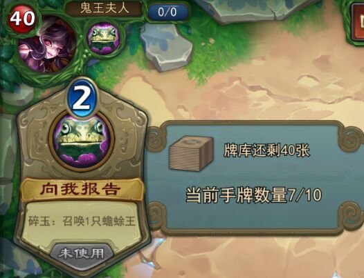 鬼王夫人,一个弃牌为主的对手,我们的先锋牌不错,请充分利用,对手有一个弃掉自己全部手卡的咒语,这就是我们胜利的基础,我们的技能打她十分厉害,请注意对手的去除咒语,很快就能过关。