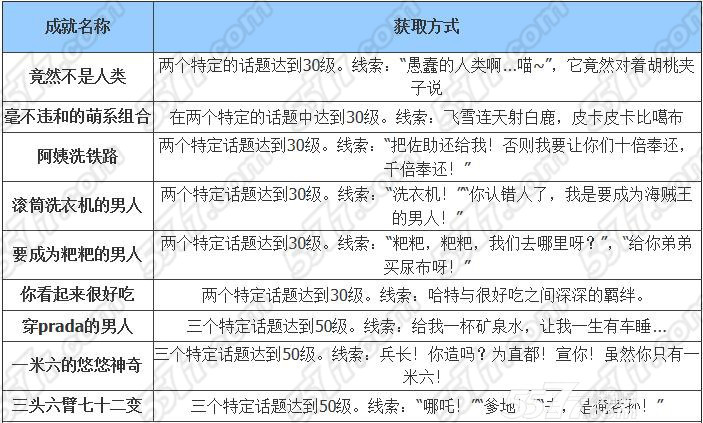 大家应该发现了后面有很多非常有趣的称号都是有特定的等级限制的,并且关于话题还需要大家根据线索来猜,那么到底这些特殊称号需要哪些话题达到相应的等级呢?下面就是巴士手游小编给大家带来这些称号获取线索的相关介绍: