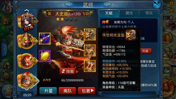 攻击力:太史慈必需攻击力,如果条件有限可以只炼化这一项;
