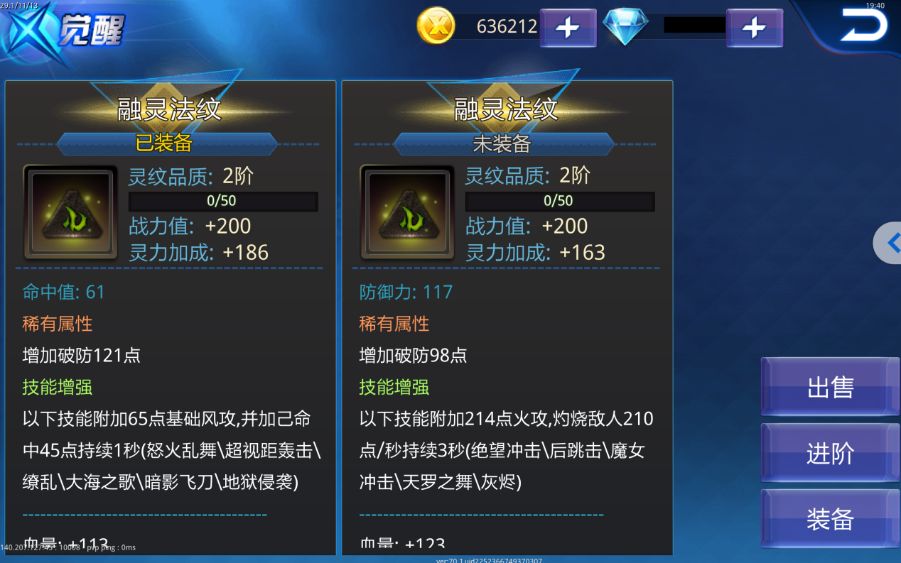 3、战力属性:第一个图为命中61,第二个图为防御117.即该项是随机产生