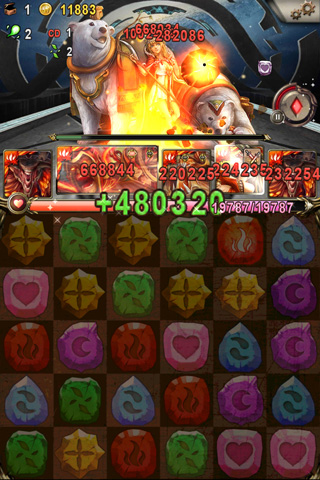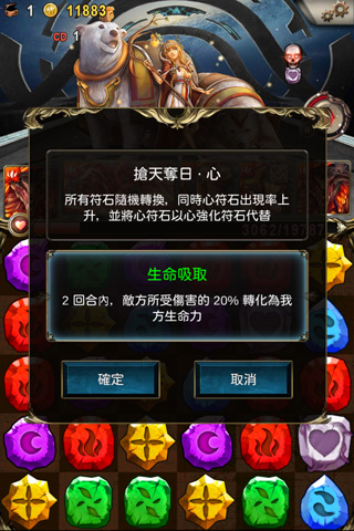 黑暗中瞬间点燃幽冥巨火。 即使生命受到威胁,在「迪亚布罗」展开「抢天夺日 ‧ 心」时,将能改变形势,同时呼唤强化生命泉源。配合魔女咒语交换的攻击优势,与战神的强力相克攻势,呼啸巨火将把敌人烧成灰烬。