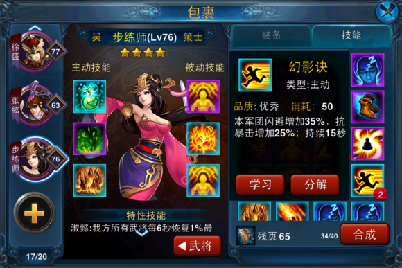 抗暴击闪避诀:军团闪避增加35,抗暴击增加25
