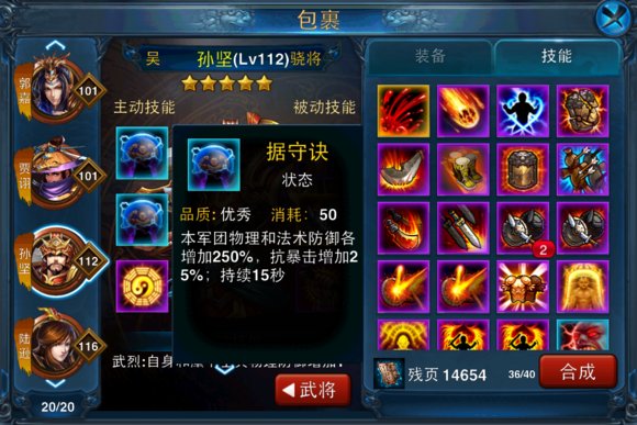 抗暴击据守诀:军团双防加250%,抗暴击增加25