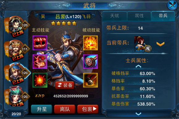 当然,以上只是结合本人的一个输出例子,来简单说说这个技能,让大家有一些直观的感受。战场瞬息万变,只有在合适的攻防面前,开合适的技能,才是最合理的选择——没有一成不变的方法。本人最看好的是抗暴击据守,所以举的例子也是这个,因为双防将领十几万双防,用蓝抗暴击据守一般情况已经足够(暂不考虑大神级别),而蓝抗暴击格挡,据说玩横枪的赵云用得很不错,或者是玩横枪的孙策用蓝抗暴击闪避。至于实战如何用,各位主公自己慢慢实践。