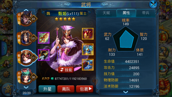 首先分析辅助肉的地位,金将的出现让新阵容321 ,231迅速出现,这套阵容有个好处是防止关羽绕后,还可以保护己方太史慈不被偷袭,而且横枪慢慢的有人用的多了,单人路出现一些横抢武将,比如金关羽,金吕布。然而我更看好的是一些辅助型武将,例如金贾羽封印,甄姬回蓝,鲁肃回蓝。金贾羽投入大,效果不一定好,直接pass了,在甄姬和鲁肃之间犹豫了半天,因为现在好几次的胜利都是持久战我多了一个技能,获得了胜利。所以我更倾向于甄姬。而鲁肃对于土豪来说非常喜欢,因为他可以帮助你快速的出金将无双技从而取得胜利,但是我们区的情况大家水平都比较接近,不是太史慈先破竹无双就可以胜利的。因为对面会跟着一个无双,反而出现很多残局情况。所以,甄姬被我选中了。但是我的甄姬实在是我都感觉惨不忍睹=。=。发图看下