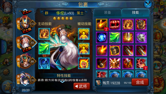 总结:华佗可以是一个辅助性的神将,不需要什么被动和装备,鲁肃和甄姬结核性,具有巨大作用,残局回血效果也惊人,等6月份最强赛结束,估计华佗将慢慢开放,那时候通天塔的古币估计都换齐太史慈了呢。即使不能pk,华佗刷本刷塔的效果,将替代步练师成为送死第一将。