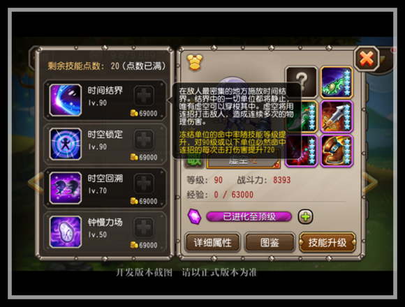 时间结界(大招):在敌人最密集的地方施放时间结界。结界中的一切单位都将静止,唯有虚空可以穿梭其中。虚空将用连招打击敌人,造成连续多次的物理伤害。