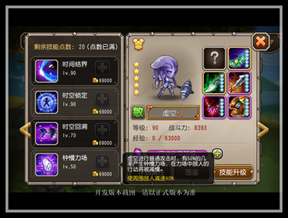钟慢力场(普通):虚空进行普通攻击时,有50%的几率产生钟慢力场,在力场中敌人的行动将被减慢。