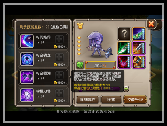 时空回溯(普通):虚空有一定概率通过回溯时间来躲避任何种类的伤害,但超过她躲避能力的那部分伤害将继续承受。