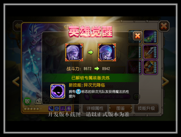 目前属于异次元的英雄有电魂,在满级满装备的情况下,他与虚空一起上场时,会增加180点魔法抗性。
