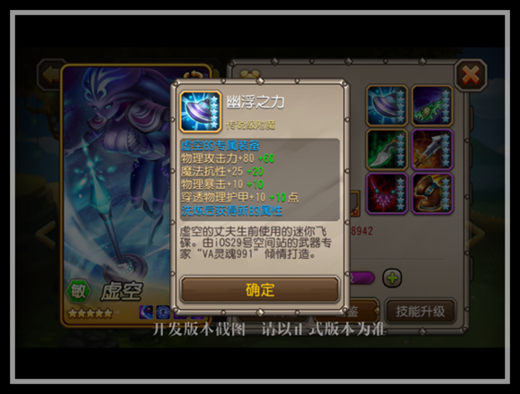 虚空的觉醒装备——幽浮之力,在物攻、魔抗、暴击和穿透护甲上有较大提升,这些无疑都增加了虚空的输出能力,同时也增强了她的生存能力。