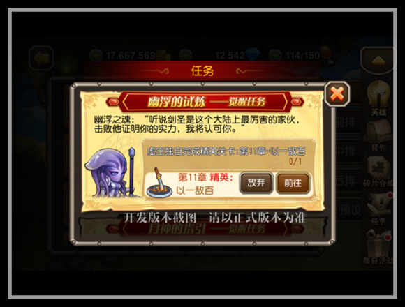 觉醒任务第三环:虚空独自完成精英关卡:第11章-以一敌百,1次。
