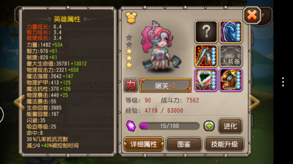可以看到3星屠夫面板属性很不错,满装的话能到5W血量,双抗500+,闪避35!如果开觉醒洗练或觉醒装备能再加10闪避,就能适当弥补物抗短板,物抗仅有500,非常低, 魔抗500,加上2技能的减少魔法伤害,非常不错。
